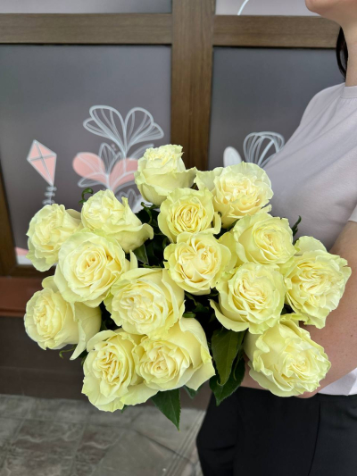 Моно из 15 роз Эквадор, сорт ''MONDIAL'', с лентой